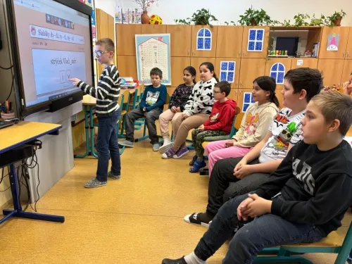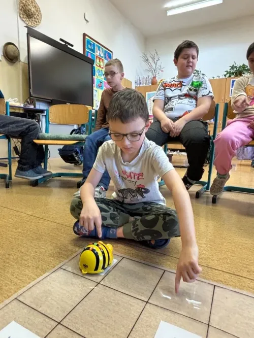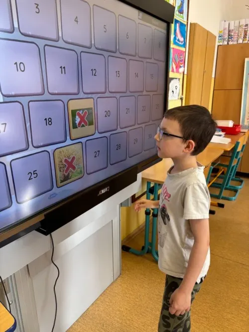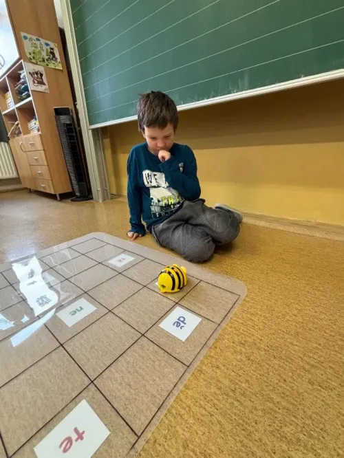 Žáci III. třídy si zábavnou formou procvičovali učivo s využitím digitálních pomůcek, jako je Bee-Bot a dotyková televize. Při práci rozvíjely logické myšlení, spolupráci i schopnost řešit úkoly. Učení formou hry žáky velmi bavilo a bylo pro ně přirozenou a motivující cestou k upevnění znalostí.