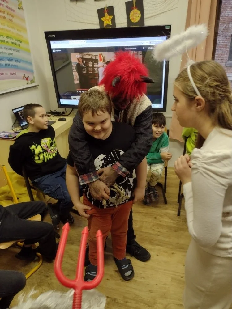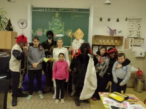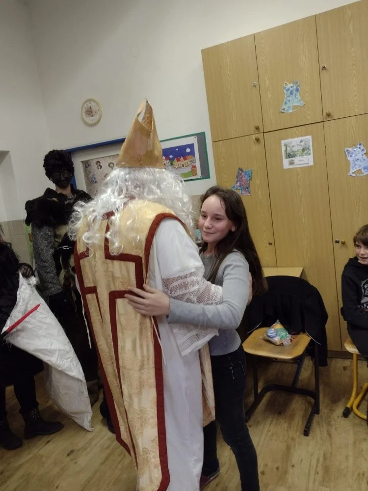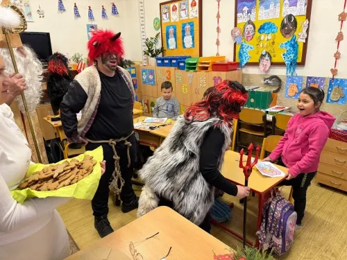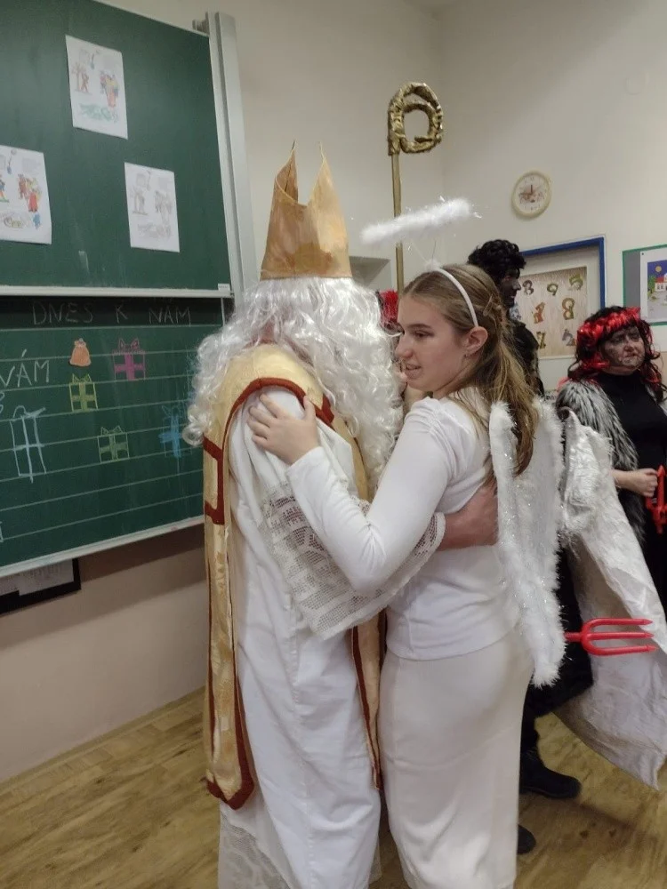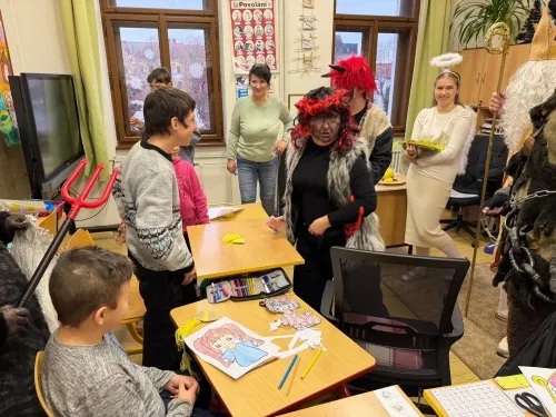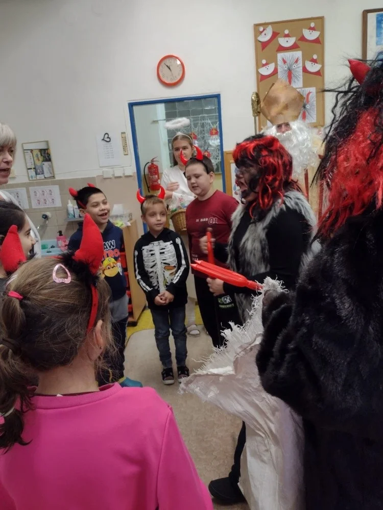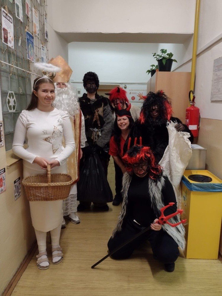 V pátek 5. 12. prošla mikulášská družina i naší školou. Mikuláš, krásný anděl a Lucifer se svými třemi pomocníky navštívili každou třídu. Družina domlouvala hříšníkům, vyslechla si básničky, zazpívala písničky a letos si i zatancovala. Děti obdržely balíčky a na chuť perníček. Všichni se dobře bavili.