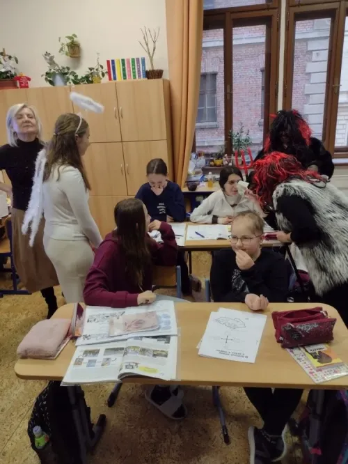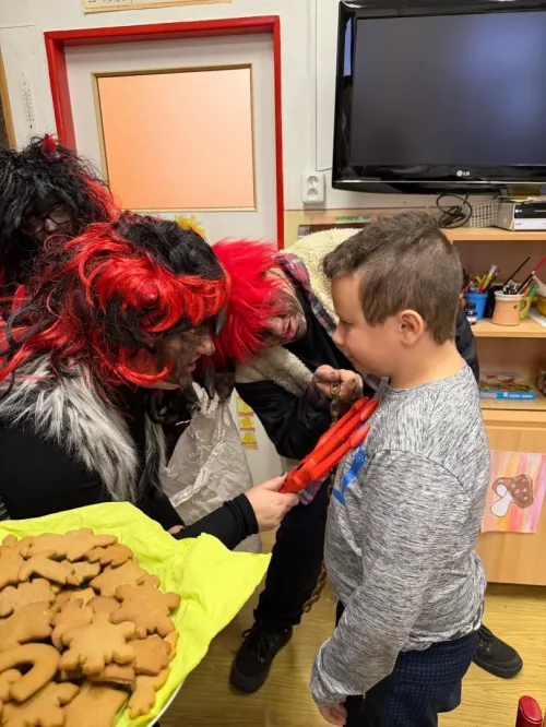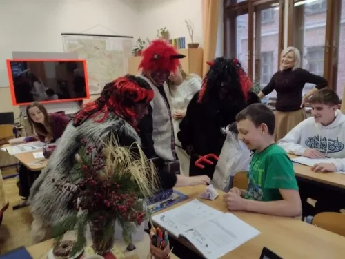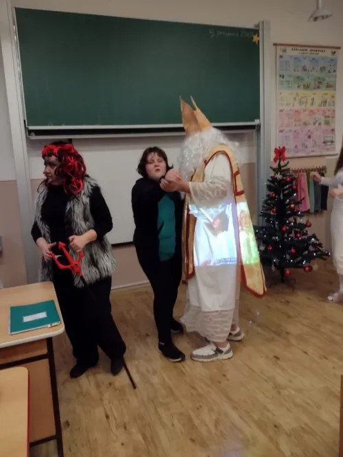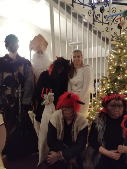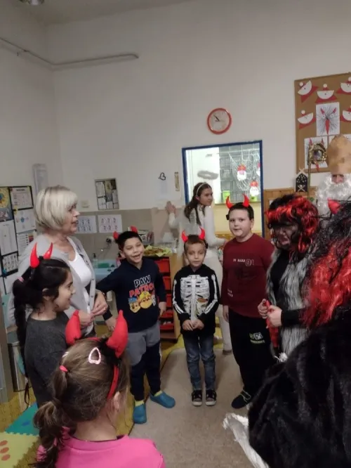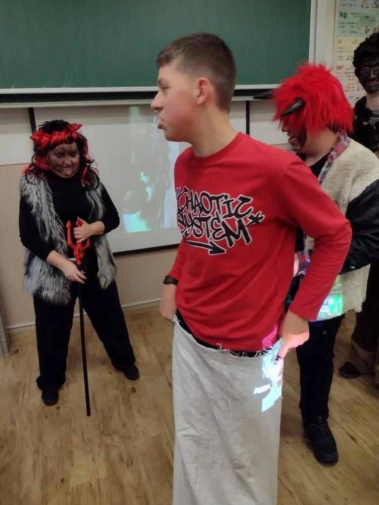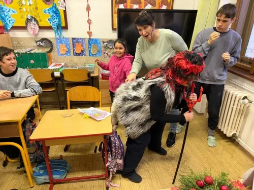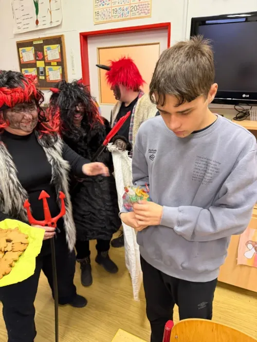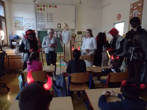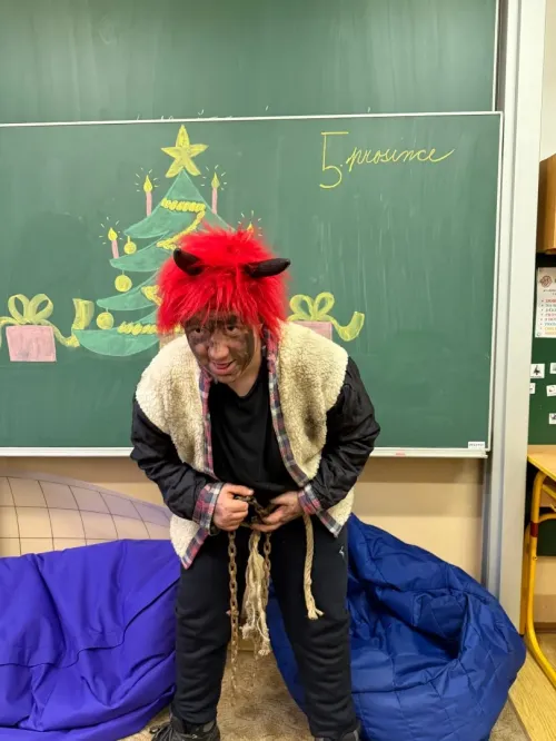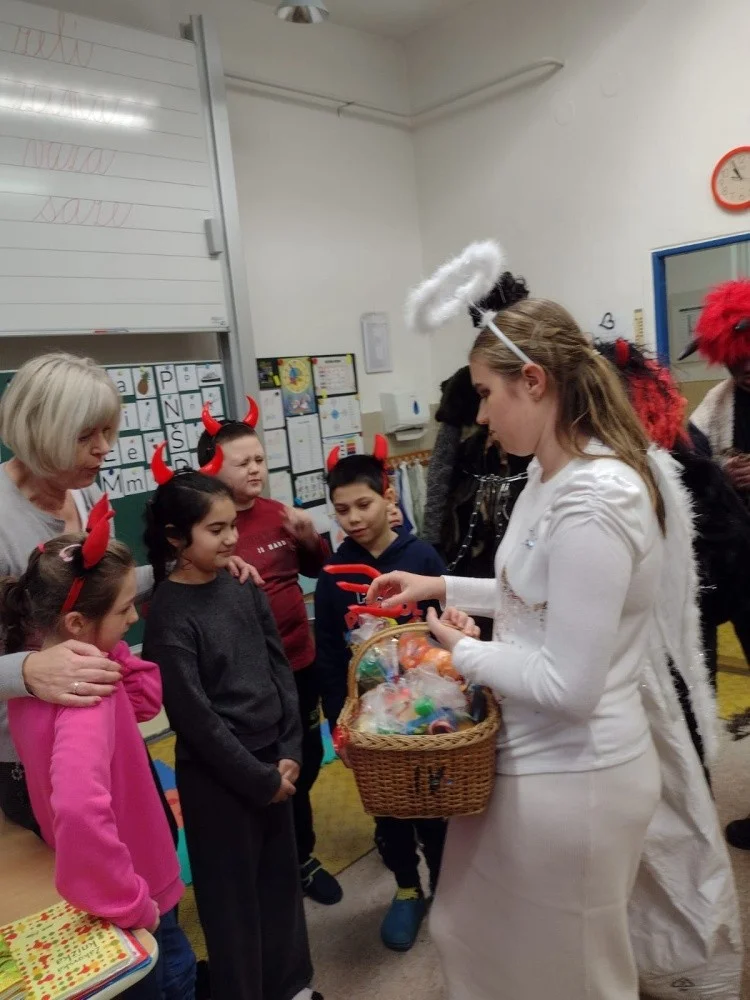 V pátek 5. 12. prošla mikulášská družina i naší školou. Mikuláš, krásný anděl a Lucifer se svými třemi pomocníky navštívili každou třídu. Družina domlouvala hříšníkům, vyslechla si básničky, zazpívala písničky a letos si i zatancovala. Děti obdržely balíčky a na chuť perníček. Všichni se dobře bavili.