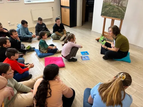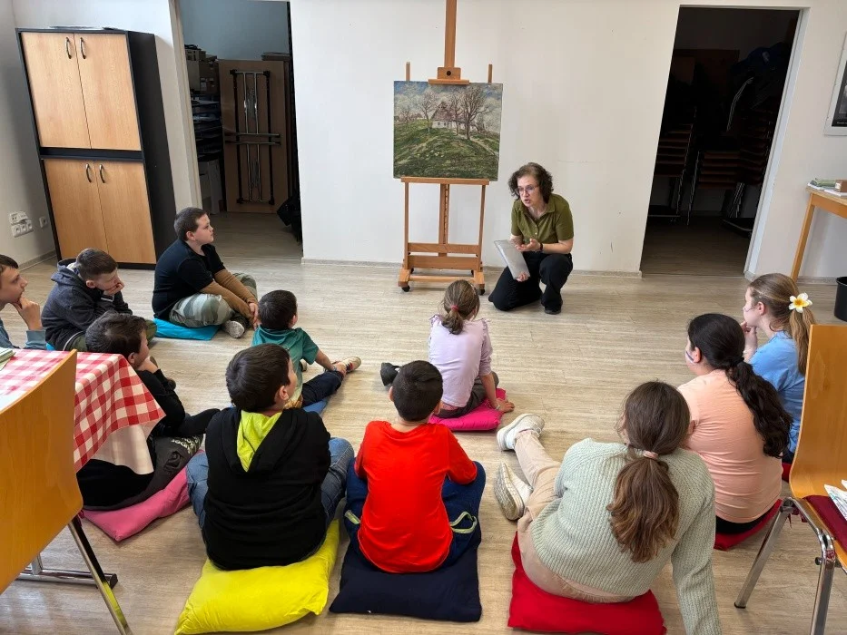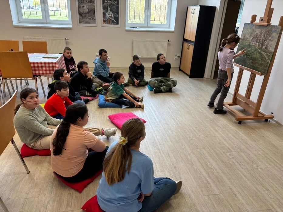 Na začátku programu si děti společně prohlédly umělecké dílo a zkusily ho vlastními slovy popsat. Následně si zopakovaly, kteří ptáci se k nám na jaře vracejí z teplých krajin, a povídaly si o jejich životě.