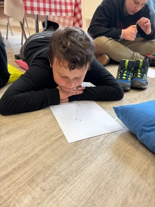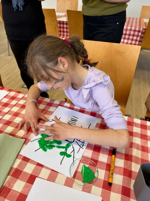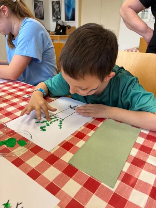 Velkým zážitkem pro všechny bylo výtvarné tvoření. Děti si nejprve vyzkoušely kresbu ptáčka jedním tahem, což pro ně byla zajímavá výzva. Poté se s nadšením pustily do tvorby vlastních uměleckých děl. Vznikly opravdu krásné a originální obrázky.