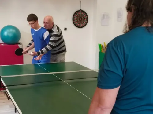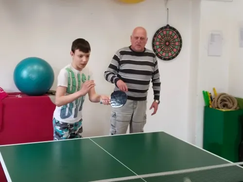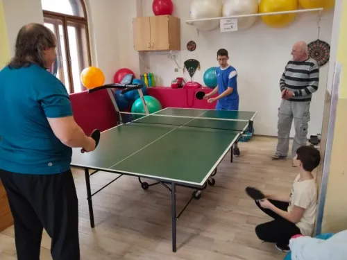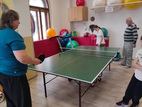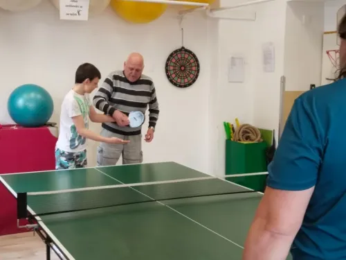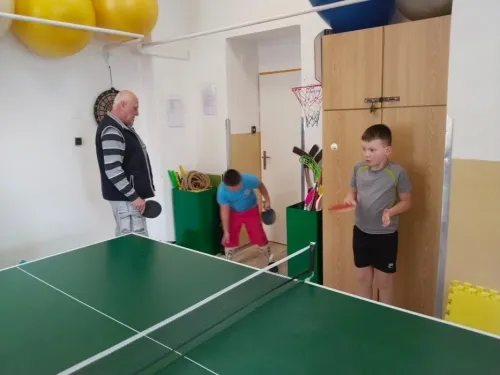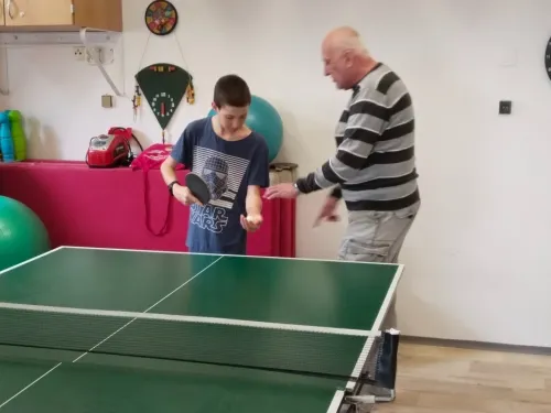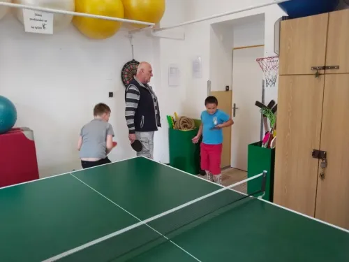 V pondělí 30. března jsme měli sportovní aktivity pod dohledem profíků. Navštívili nás zkušení profesionální trenéři stolního tenisu. Cíl byl jasný, odstranit zlozvyky, pilovat techniku se zaměřením na správný postoj a přenesení váhy, strategické postavení u stolu, protože ve stolním tenise platí, kde nejsou nohy včas, tam ruka nic nezachrání.