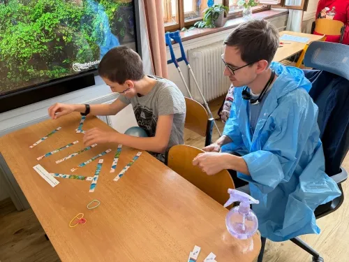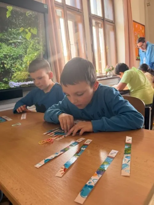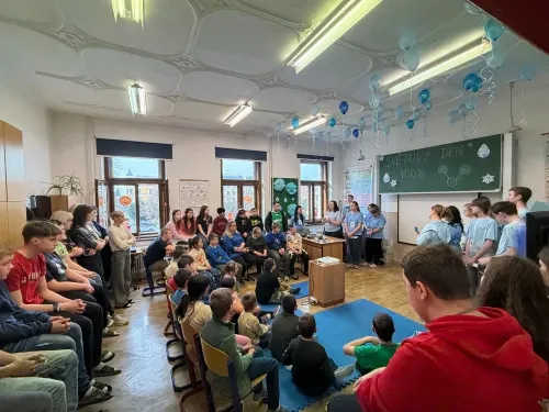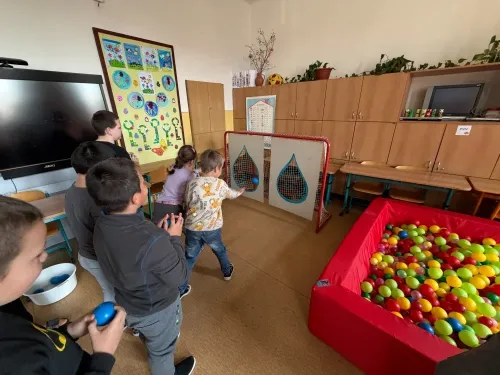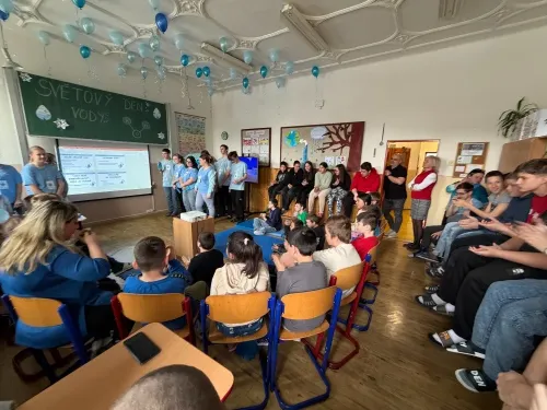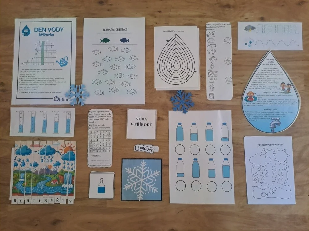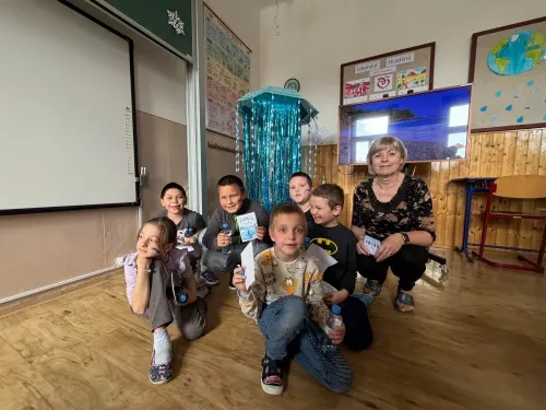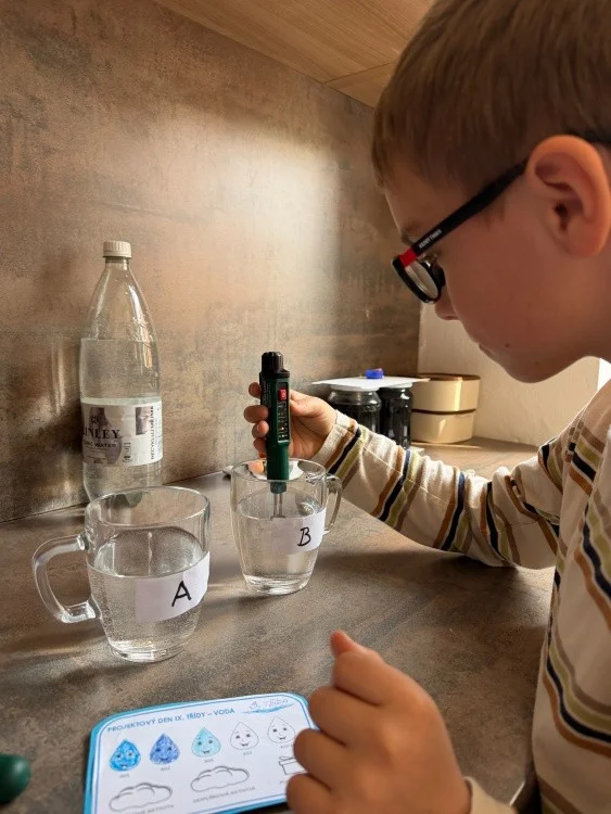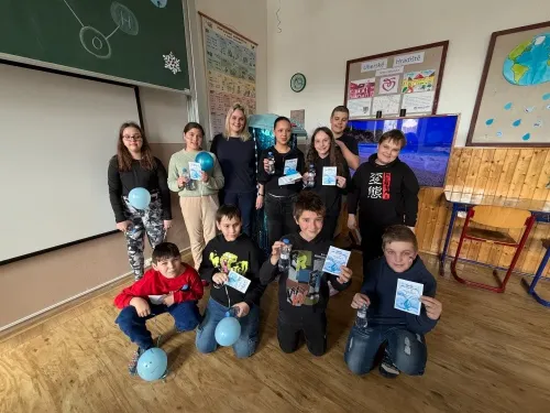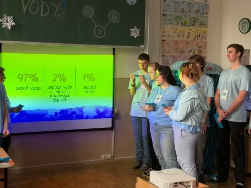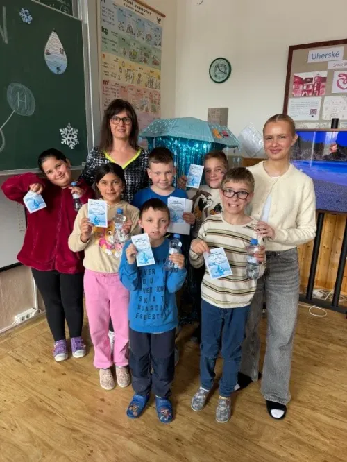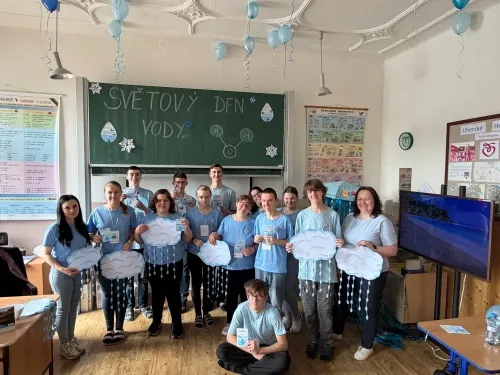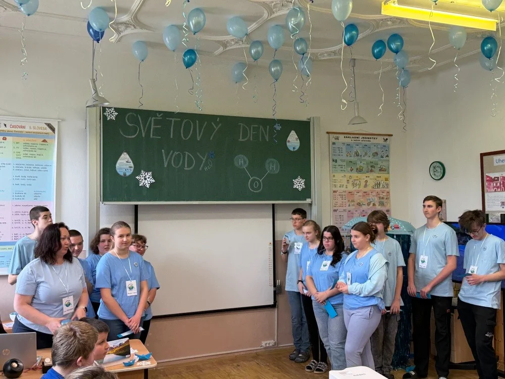 22. března se slaví Světový den vody. Právě toto téma si vybrala IX.třída jako svůj letošní školní projekt. Aktivity byly připraveny pro všechny věkové kategorie naší školy. Nejprve žáci IX. třídy všechny uvítali ve své třídě, kterou vyzdobili, a seznámili všechny se základními informacemi o vodě pomocí prezentace a krátkého videa. Na závěr první části jsme si společně poslechli Modlitbu za vodu v podání Jiřího Pavlici a Hradišťanu. Druhou částí projektu pak byly různě zaměřené aktivity na téma voda. Žáci si tak mohli například vyrobit náramek s vodní tématikou, rybičku z drátků, házeli a lovili kapky, propluli vodní matematikou, osvěžili si koloběh vody pomocí vyrobených pomůcek, hledali sněhové vločky a mohli si vyzkoušet řadu pokusů s vodní tématikou jako například vajíčkové potápěče, skořicovou bariéru, elektrolýzu nebo si mohli vyrobit dešťový mrak. K dispozici měli i různé kvízy, osmisměrky, vodní grafomotoriku a spoustu dalšího. Na závěr dostal každý účastník diplom, malou sladkost a lahvičku s minerální vodou Rajec.