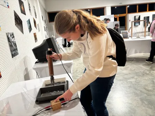 V Muzeu pod vodárnou v Břeclavi se konala interaktivní výstava s názvem „Úžasné divadlo fyziky“. O tom, že fyzika není jen nudný předmět, už vědí žáci z hodin. Ale kolik zajímavostí se dá najít na obyčejných věcech, když se na ně podíváme očima vědy, jsme objevili až na interaktivní výstavě, kterou pořádala skupina vystudovaných přírodovědců s názvem ÚDiF (Úžasné divadlo fyziky a chemie) ve spolupráci s Muzeem pod vodárnou v Břeclavi. Mohli jsme si vyzkoušet pokusy s názvem: Poslušný magnet, Vyděržaj pioněr!, Lidská baterie, Svět v IR světle, Hudba přes lidi, Zdrcadlení, Obří krasohled, Neviditelné pnutí, Plazmokoule … a mnoho dalšího. V parku jsme si po zatočení kliky nechali přehrát hudbu nebo verše a stihli jsme navštívit i Muzeum železnice, které se nachází v prostorách vlakového nádraží v Břeclavi. A pak už nás čekala jízda vlakem plná dojmů z této akce.