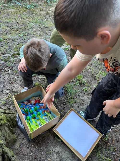 Napětí a očekávání vyvrcholilo právě v tento den, kdy se žáci vydali na místo určené v tajence. S velkým nadšením a odhodláním se pustili do hledání a byli úspěšní! Poklad se podařilo objevit a na dobrotách, které se v pokladu ukrývaly, si všichni společně pochutnali.