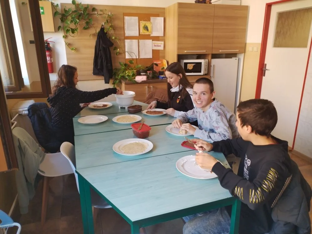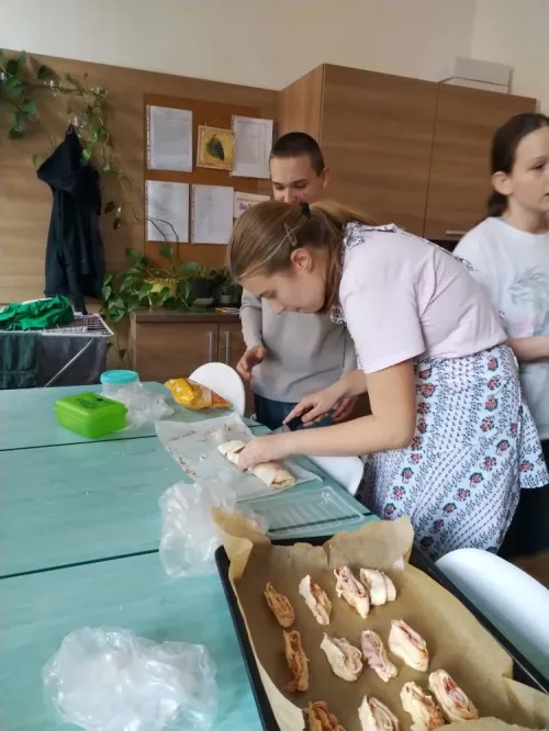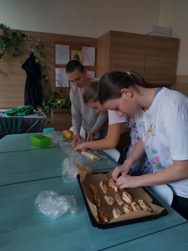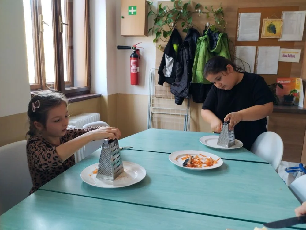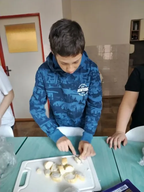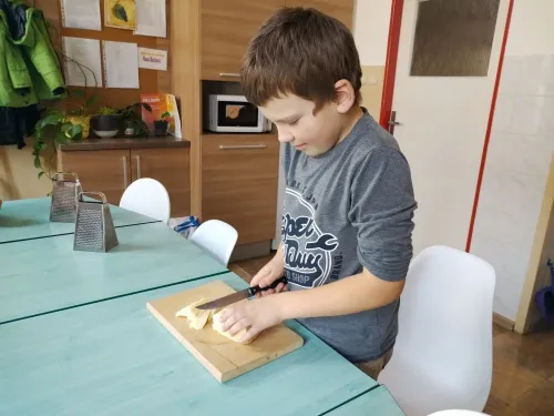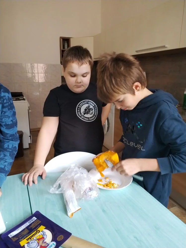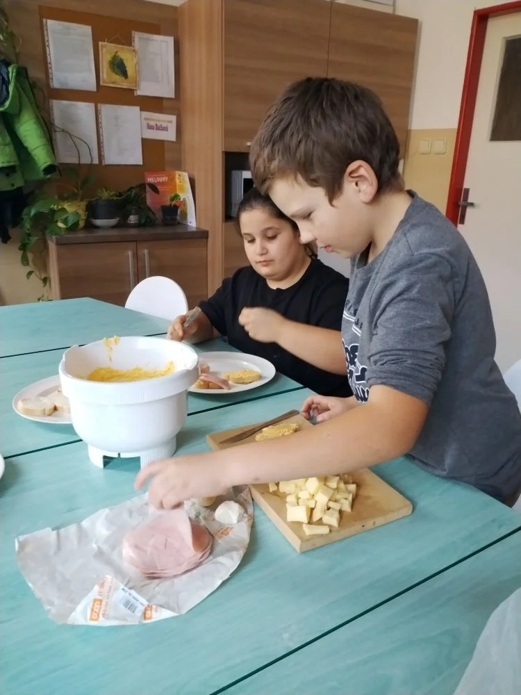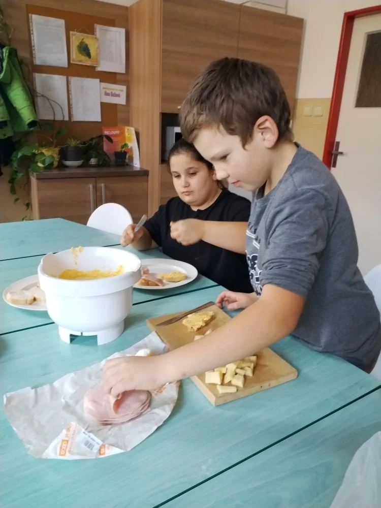 Za měsíc říjen jsme připravovali podzimní polévku z dýně hokkaido i s na másle opraženými krutonky, dále žáci nevynechali ani oblíbené palačinky s meruňkovou marmeládou nebo nutellou a šlehačkou. Děti si upekly i pizza šneky, které si zabalily domů.