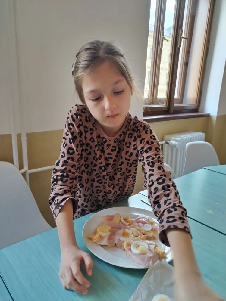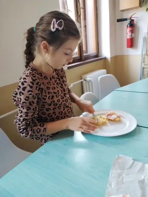 Mladší děti si připravily chlebíčky s mrkvovou pomazánkou a taktéž palačinky.