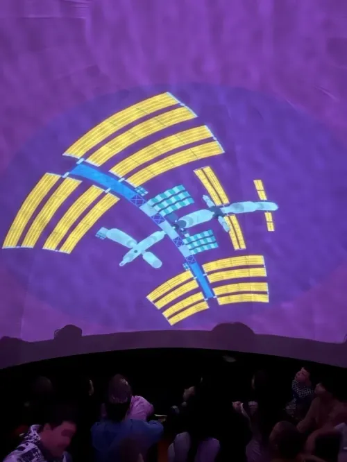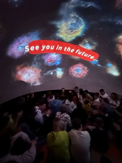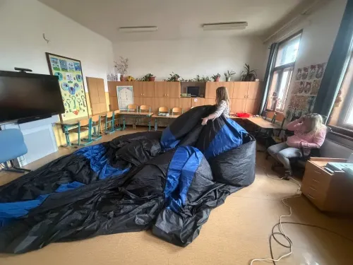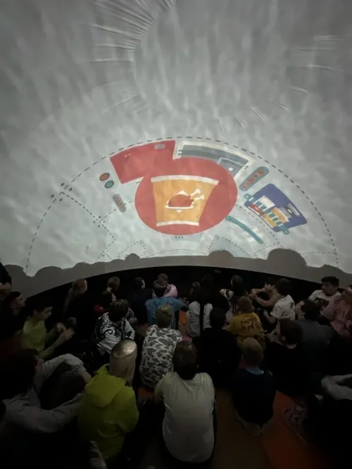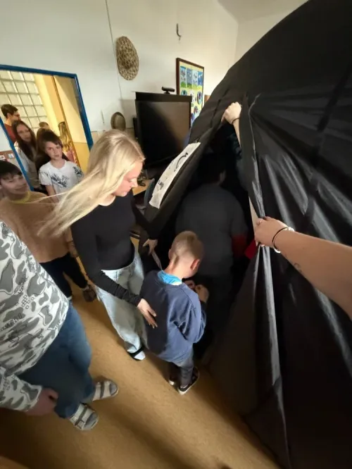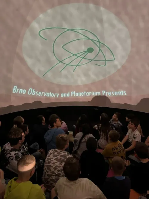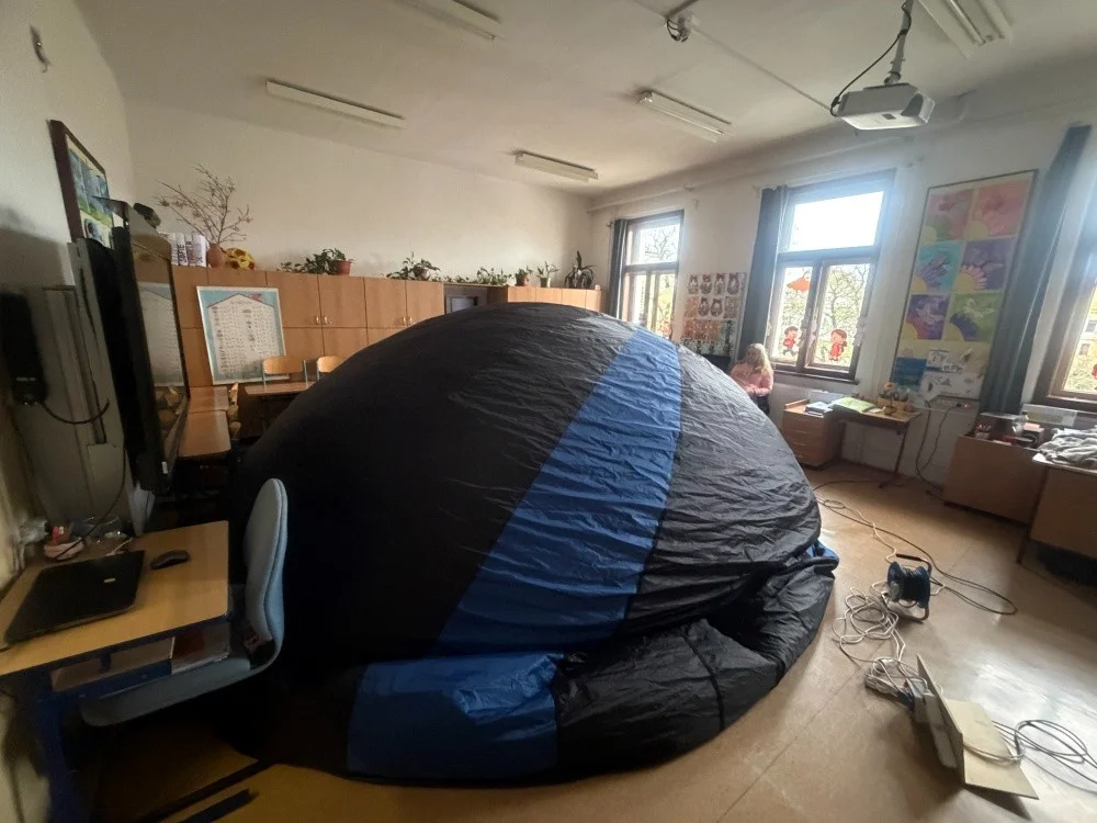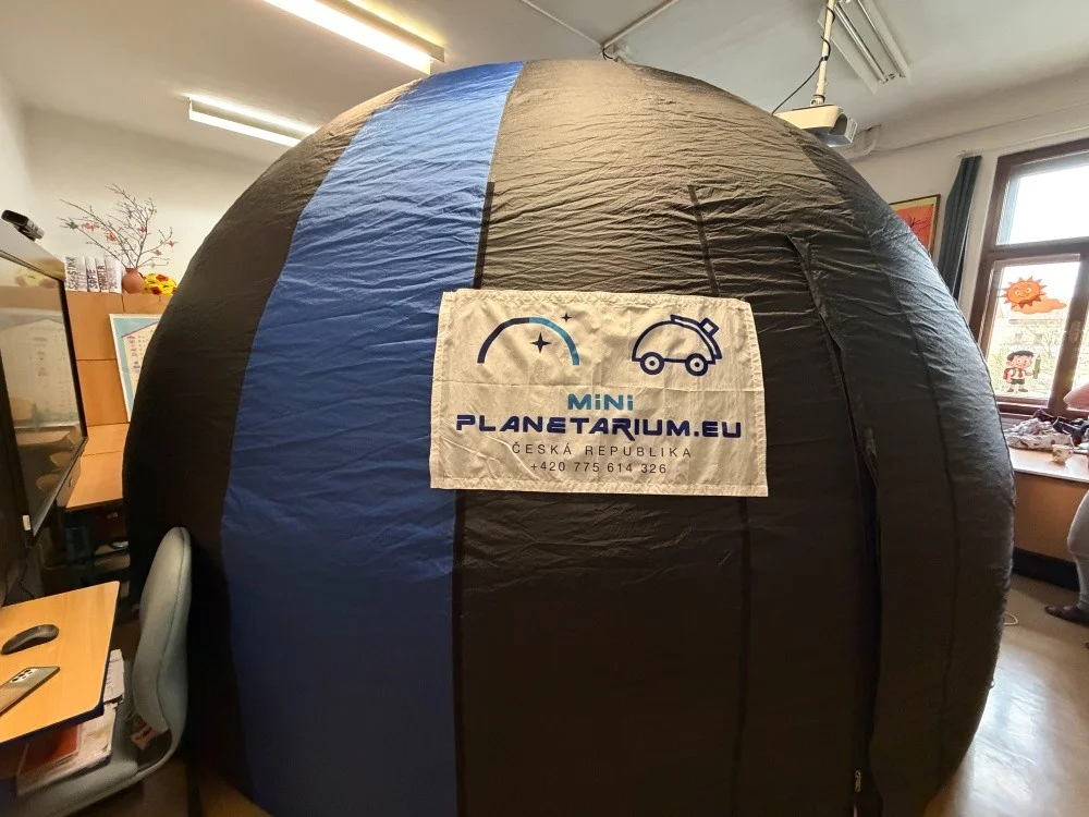 V pondělí 13. dubna u nás proběhl parádní projektový den k Mezinárodnímu dni kosmonautiky. Největším zážitkem byla návštěva mobilního planetária, ve kterém žáci sledovali fascinující projekce o hvězdách a vesmíru, včetně oblíbeného programu Cosmix. Atmosféra pod nafukovací kopulí byla prostě skvělá a děti si odnášely spoustu nových dojmů.