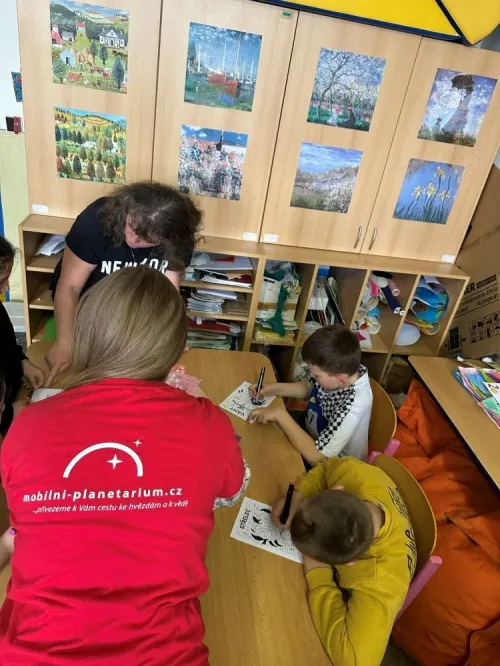 Nadšení pokračovalo i v tvůrčích dílnách, kde si každý vyrobil masku podle svého znamení. Na závěr si žáci sestavili vlastní modely raket, které teď testují při startu o každé přestávce. Celý den se maximálně vydařil a bylo radost sledovat, s jakou chutí se všichni do objevování vesmíru pustili.