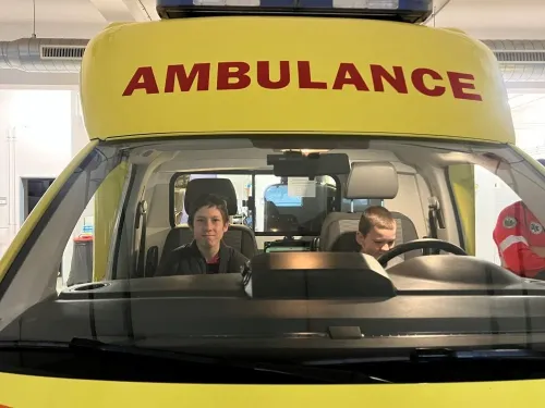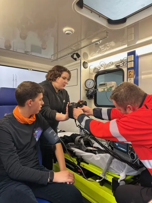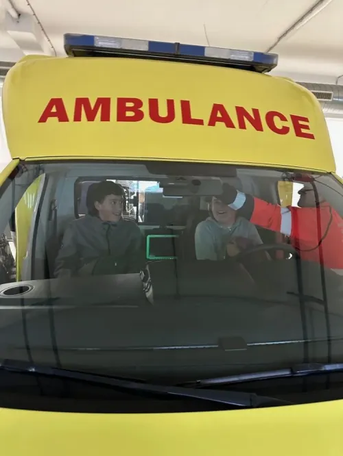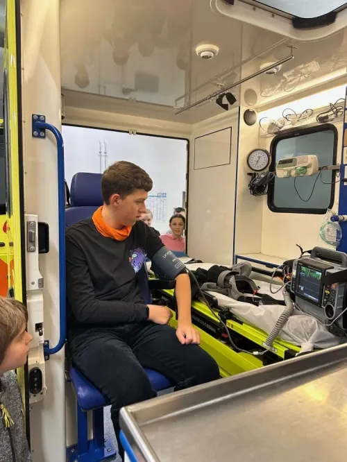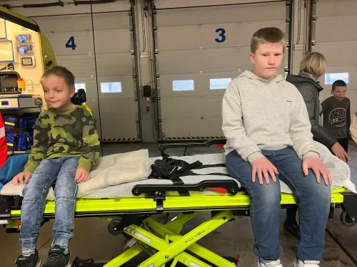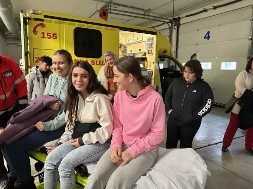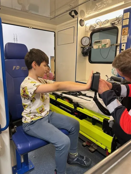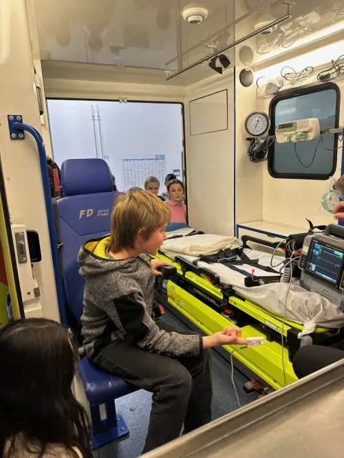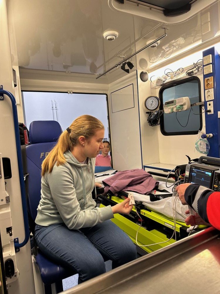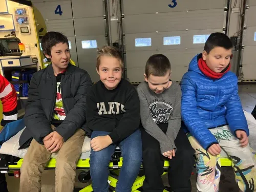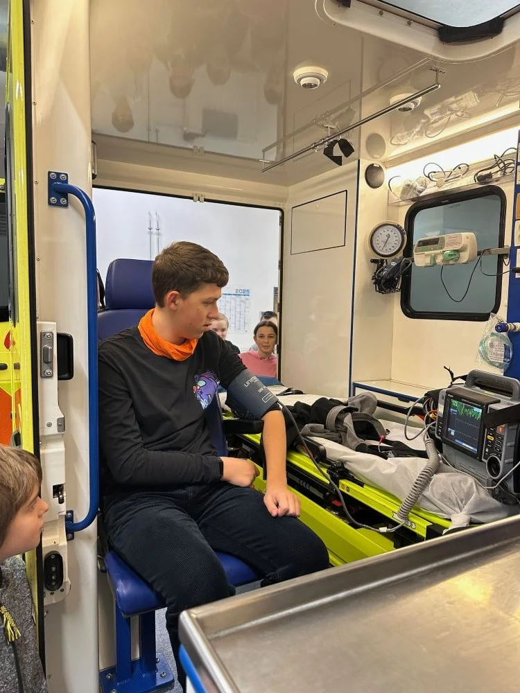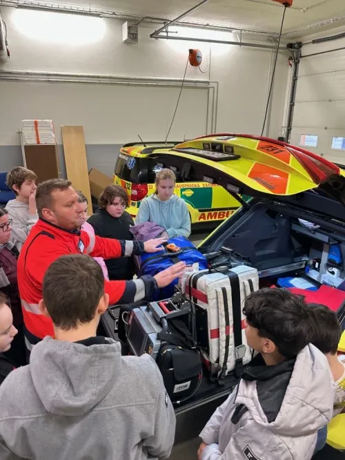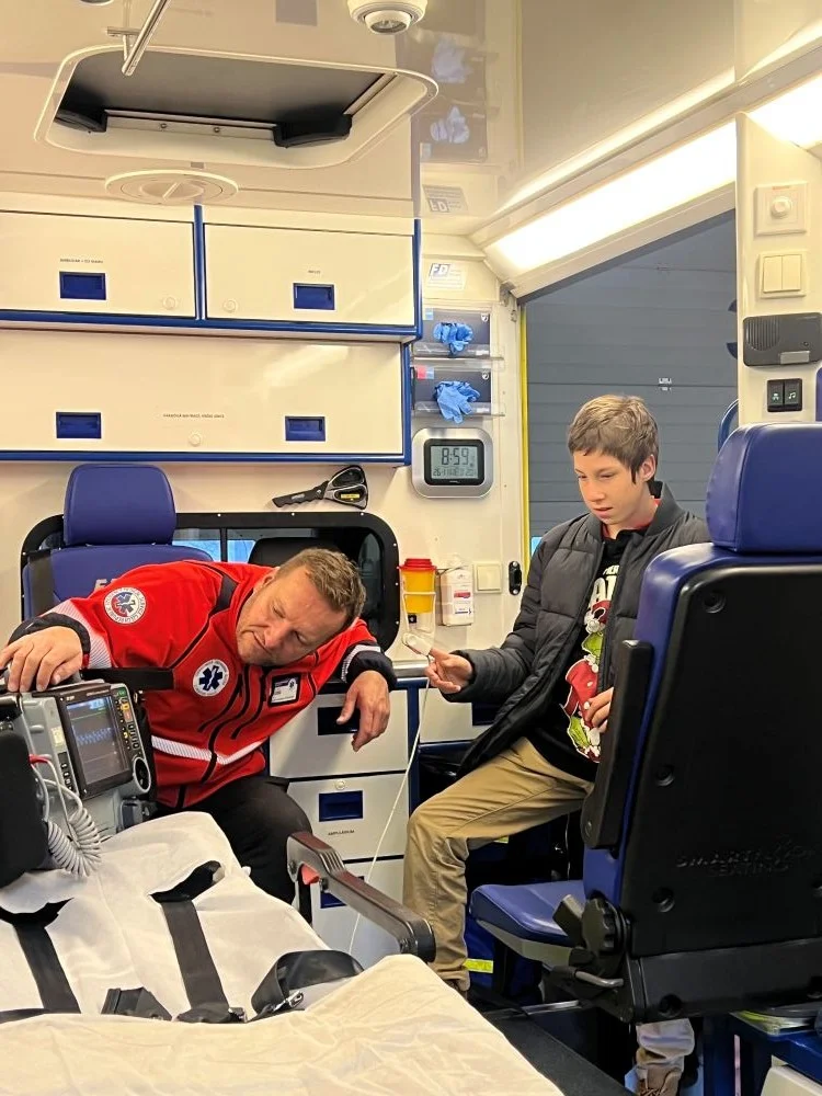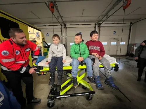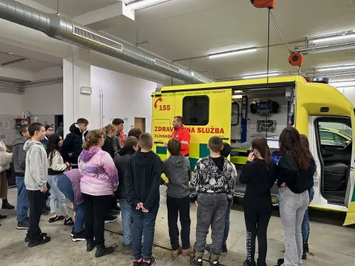 Navštívili jsme Zdravotnickou záchrannou službu při nemocnici v Uherském Hradišti. Pan záchranář nám ukázal sanitku i její vybavení a vysvětlil, jak probíhá jejich práce v terénu. Děti si mohly některé pomůcky vyzkoušet a nahlédnout do skutečného provozu záchranné služby. Exkurze byla pro všechny velmi zajímavá a poučná.